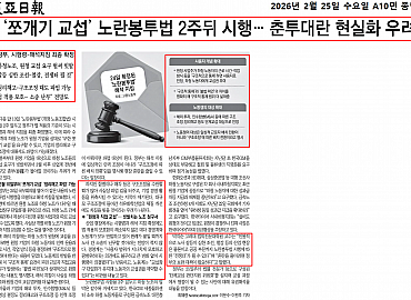 노란봉투법 앞두고… 노동부, 판단위 설치 입력 : 2026-02-18 20:40:00 수정 : 2026-02-18 18:50:22이지민 기자 원청 책임·파업범위 논란 대응행정 해석..